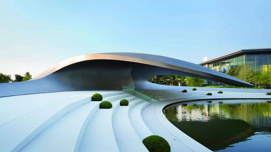 (圖O-3)沃爾夫斯堡汽車城的奧迪品牌展廳.展示出了奧迪現(xiàn)有的技術(shù)和創(chuàng)新。展廳最大的亮點(diǎn)是一個互動的“奧迪圓球”!皧W迪圓球”是參觀者參觀展廳的隨身伴侶,也是整個展廳的鑰匙,參觀者可以根據(jù)自己的需要使用鑰匙,選擇自己喜歡的欣賞內(nèi)容。