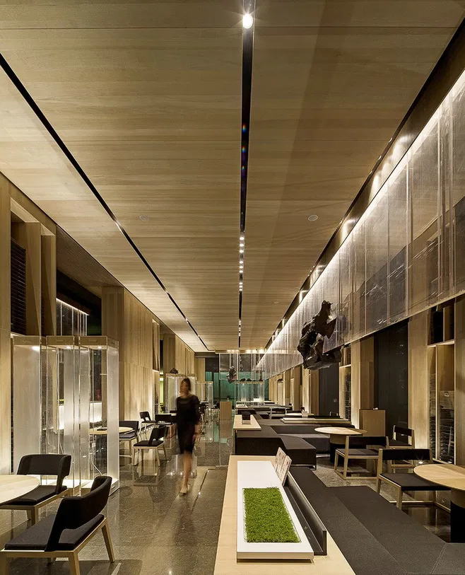 (圖O-4)浮石展廳大面積同質(zhì)化的材料應(yīng)用,降低了材料與工藝風(fēng)險,并建立快速復(fù)制應(yīng)用的施工工藝標(biāo)準(zhǔn),現(xiàn)場組裝的模塊化材料很大程度上提升了工程進(jìn)度與效率。作為完整的空間一陳設(shè)一家具一標(biāo)識一體化設(shè)計(jì)應(yīng)用項(xiàng)目,浮石展廳設(shè)計(jì)獲得2014APIDA亞太室內(nèi)設(shè)計(jì)金獎。