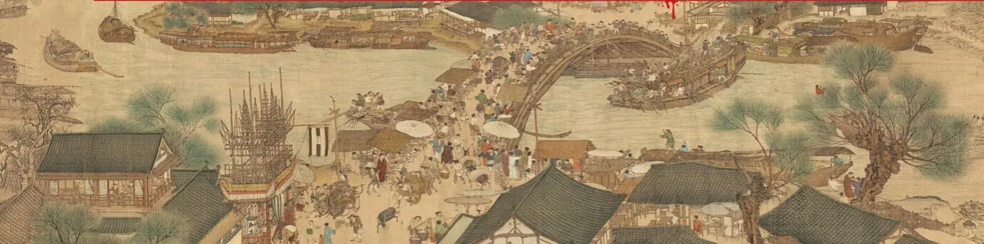 展廳的發(fā)展可以追溯到古代的商業(yè)活動。店鋪為了促進商品形象的展示而產生了展廳設計。在中國四川廣漢出土的東漢市集畫像磚中,可以清晰地看到當時店鋪實物陳列的場景。南宋吳自牧著的《夢粱錄》(圖1-1),曾詳細描述了南宋杭州城內多姿多彩的店面展示和商品陳列的場面:“自五間樓北,至官巷南街,兩行多是金銀鹽鈔交易鋪,前列金銀器皿及現(xiàn)錢……紛紜無數(shù)”。當時的餐飲店鋪“其門首,以仿木及花樣沓結縛如山棚,上掛半邊豬羊,一帶近里門面窗墉,皆朱綠五彩裝飾,渭之‘歡門’”“沛京熟食店,張掛名畫”。這類廣告形式發(fā)展為以商品實物或其他材料做成的相關商品模型,懸于店首門前,作為一種營業(yè)標志。在張擇端的《清明上河圖》(圖1-2)上可清楚地看到一些以個人姓名命名的店鋪和商行的店面招牌。