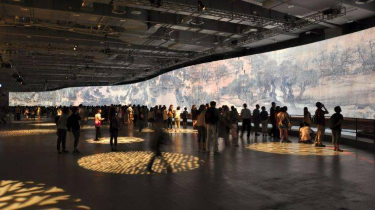 圖1-6 2010年上海世博會以城市生活為主題,水品石數(shù)字科技有限公司制作的數(shù)字動態(tài)的《清明上河圖》,由12臺投影儀同時工作,動態(tài)化展示出北宋畫家張擇端的《清明上河圖》,也展現(xiàn)了我國古代城市規(guī)模的龐大和繁華。